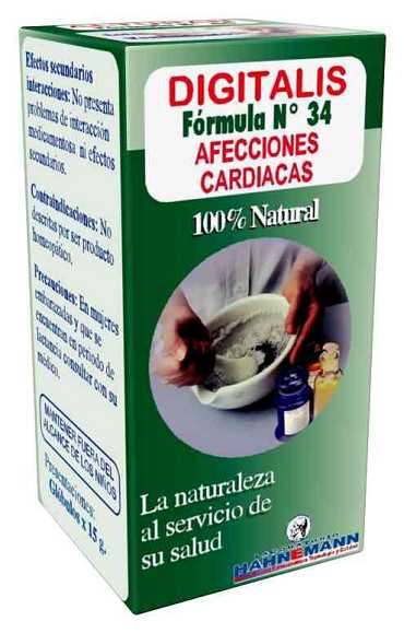 PRESENTACIÓN: DIGITALIS - FORMULA No 34: Caja con un frasco de vidrio de 30 ml en gotas.