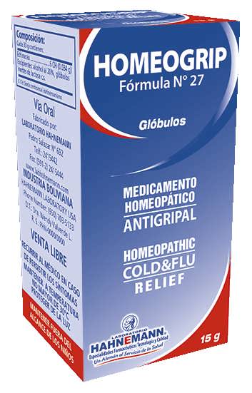 PRESENTACIÓN: HOMEOGRIP - FORMULA No 28: Frasco de vidrio de 15 g en glóbulos.
