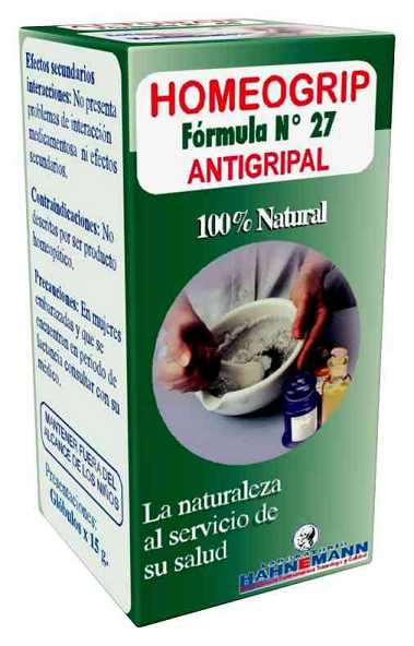 PRESENTACIÓN: HOMEOGRIP - FORMULA No 27: Frasco de vidrio de 30 mL en gotas.